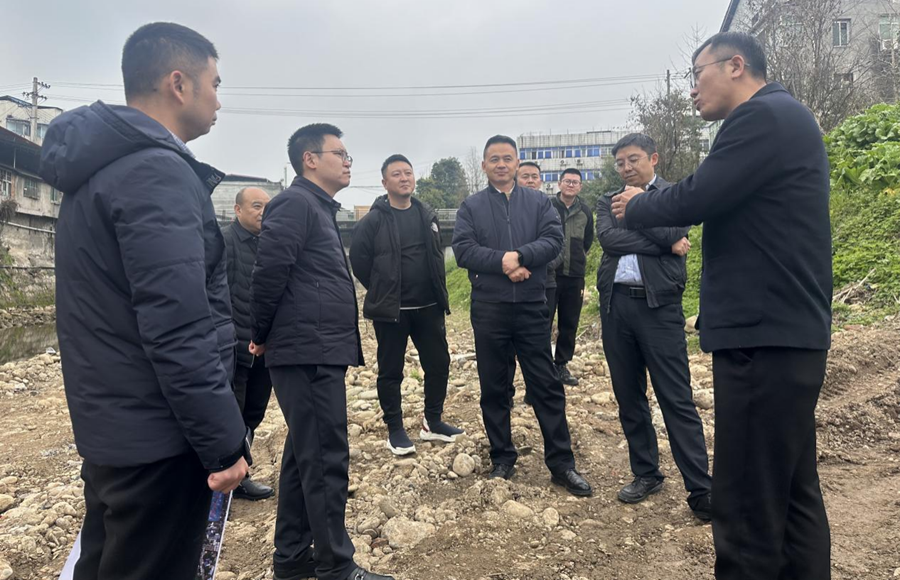 2月26日,區(qū)委常委、紀委書記、監(jiān)委主任汪勁宇帶隊調(diào)研綿陽市安州區(qū)秀水河堤防治理工程建設情況。(素材來源:工程項目部 何明鴻)